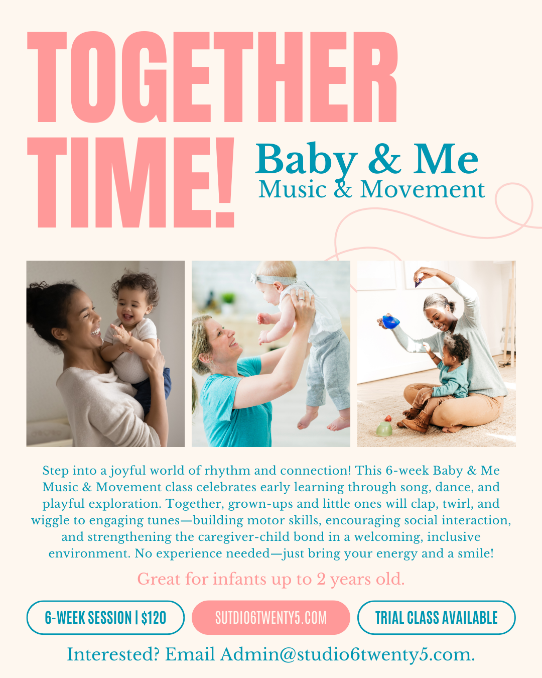 Looking for a joyful way to connect with your baby? Join us for Together Time: Baby & Me Music & Movement—a 6-week class designed to spark giggles, wiggles, and wonder through music, movement, and meaningful bonding time. 💕👶